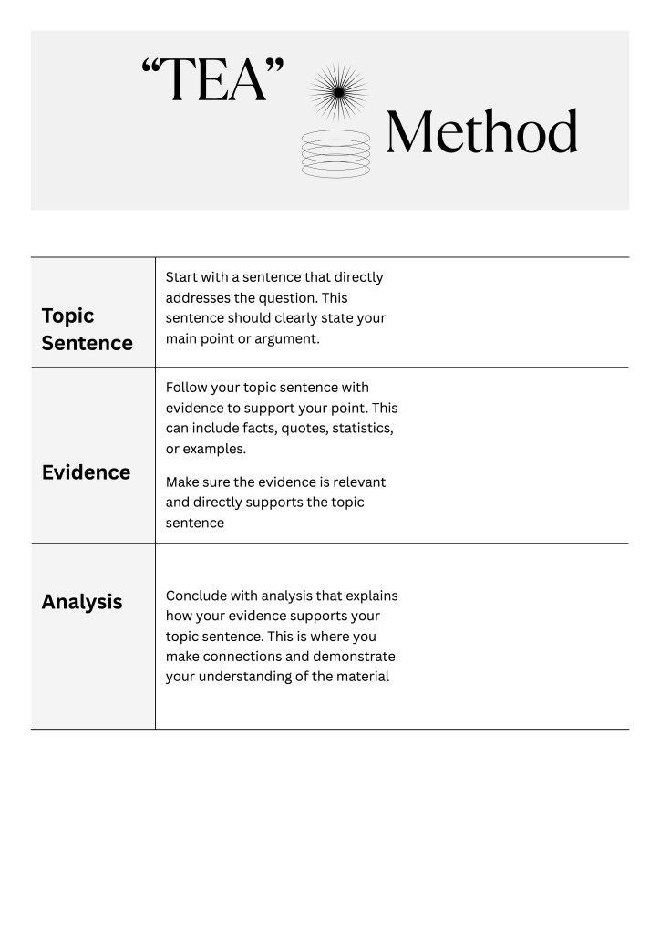 Next, let’s take a look at HOW you can answer SAQ questions with the “TEA” Method.