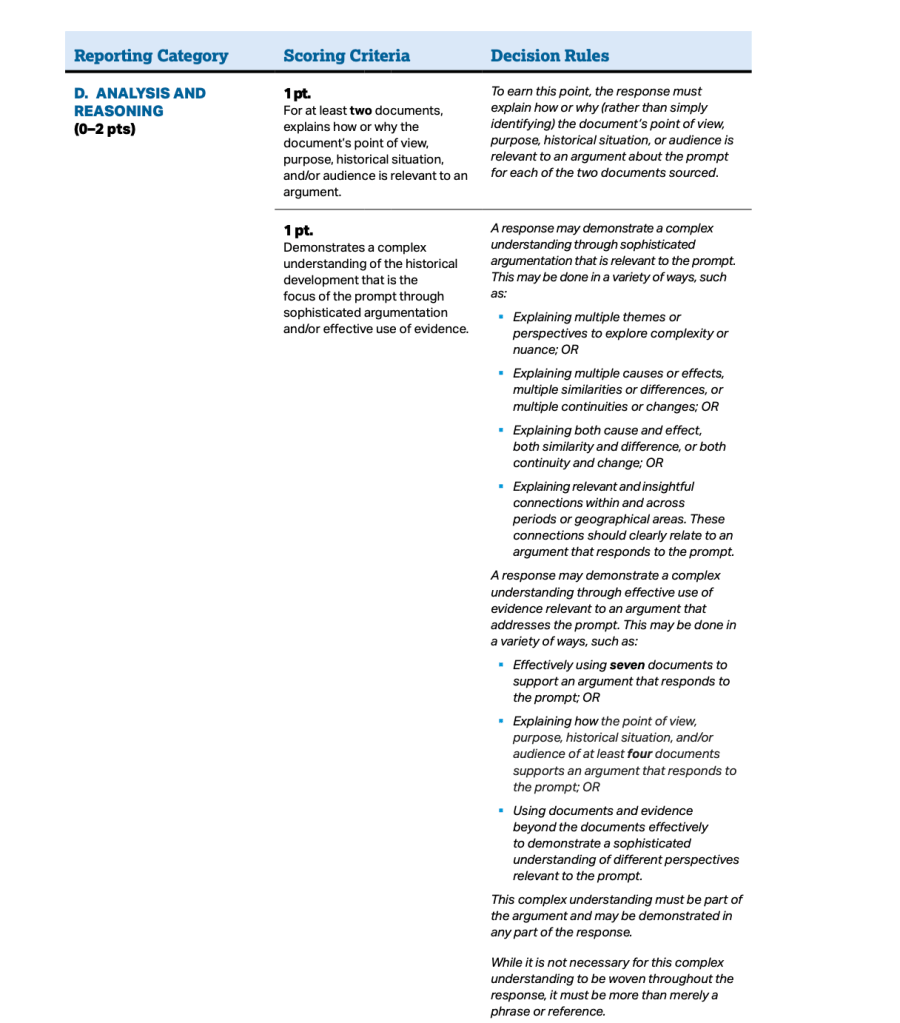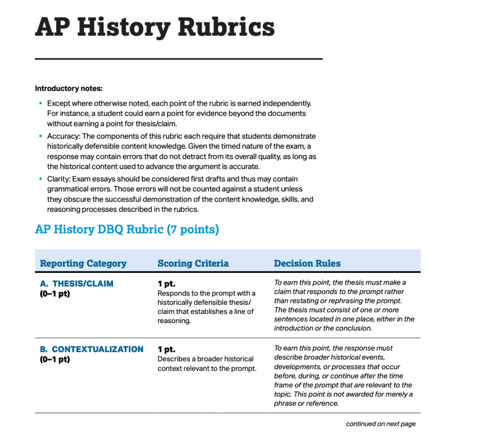 AP Rubric for DBQ: